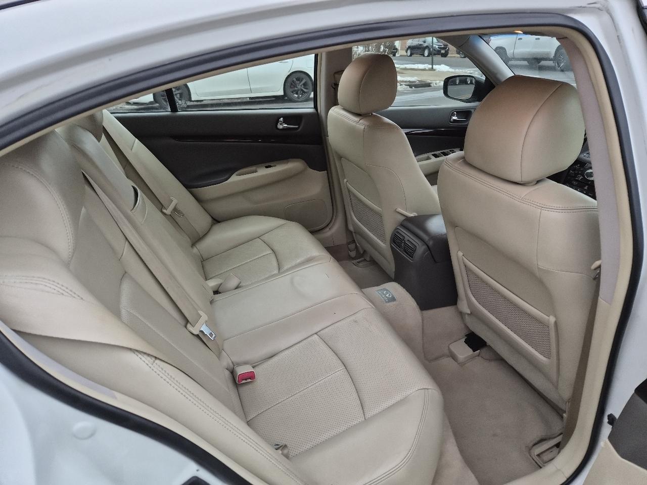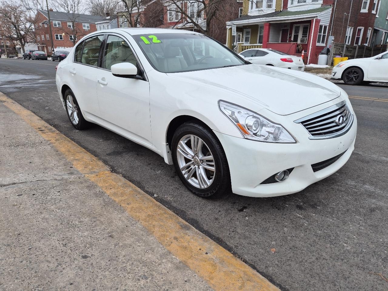 Step into luxury with this sleek White 2012 Infiniti G Sedan! This car is not just a means of transportation, it's an experience. Equipped with advanced safety features like ABS brakes and multiple airbags, you can drive with peace of mind knowing you're protected. The leather seats are not just comfortable, they're heated too - perfect for those chilly mornings. With a powerful engine and traction control, you'll feel confident and in control on any road. Cruise in style with the alloy wheels and automatic headlights that give this car a sporty edge. The carfax report is available for this car, so you can buy with confidence. Don't miss out on the opportunity to own this luxurious and reliable ride that will make every drive an enjoyable one. This Infiniti G Sedan is not just a car, it's a lifestyle upgrade.